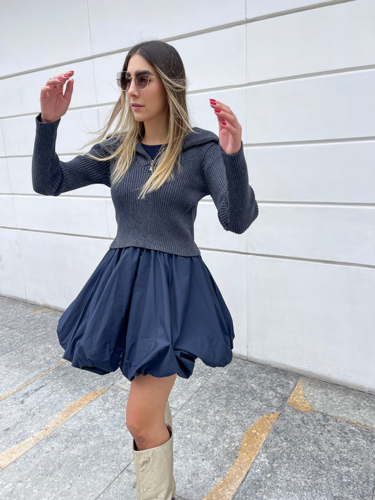 Amalfi Jacket Crop Gris y Azul