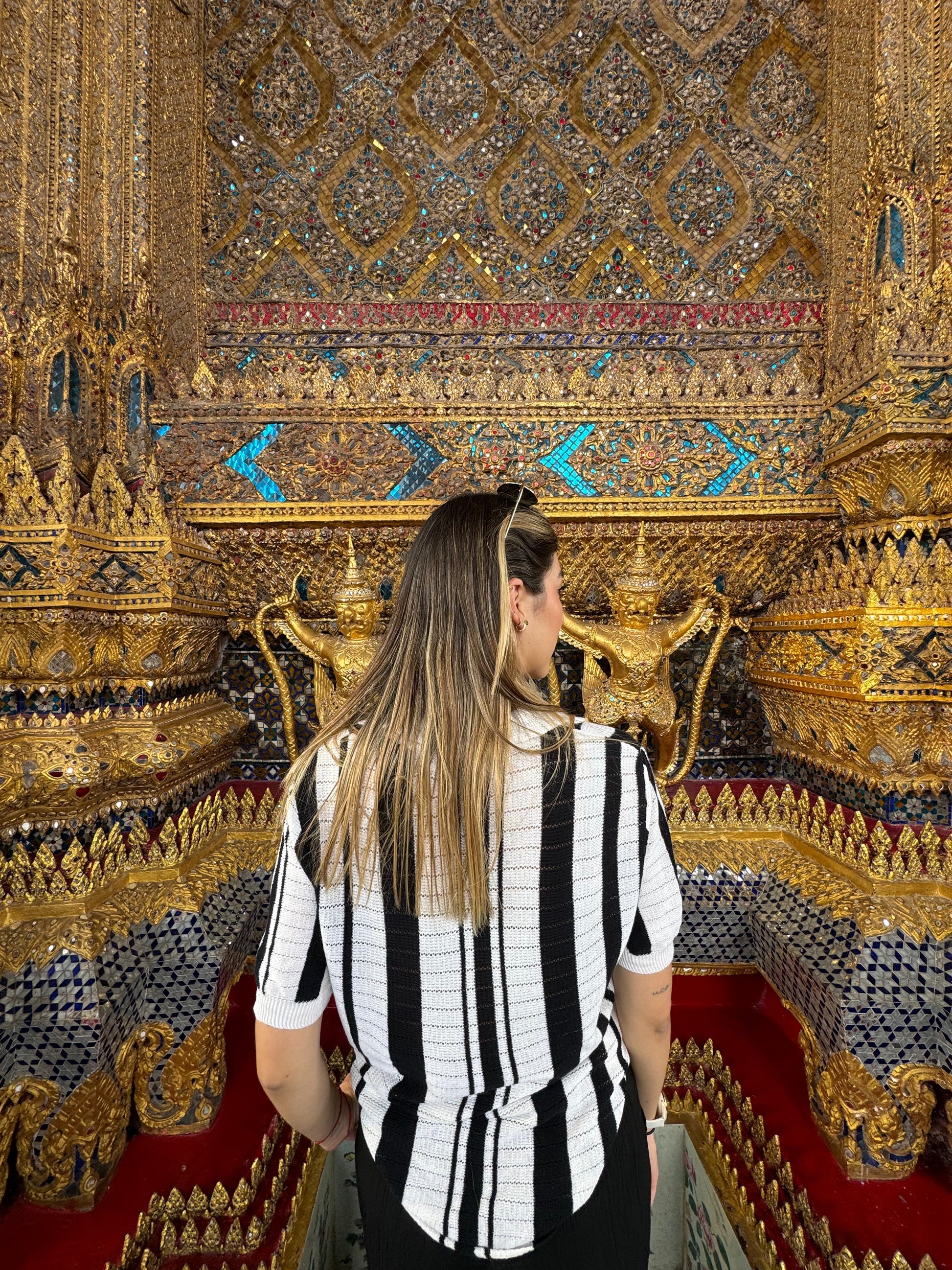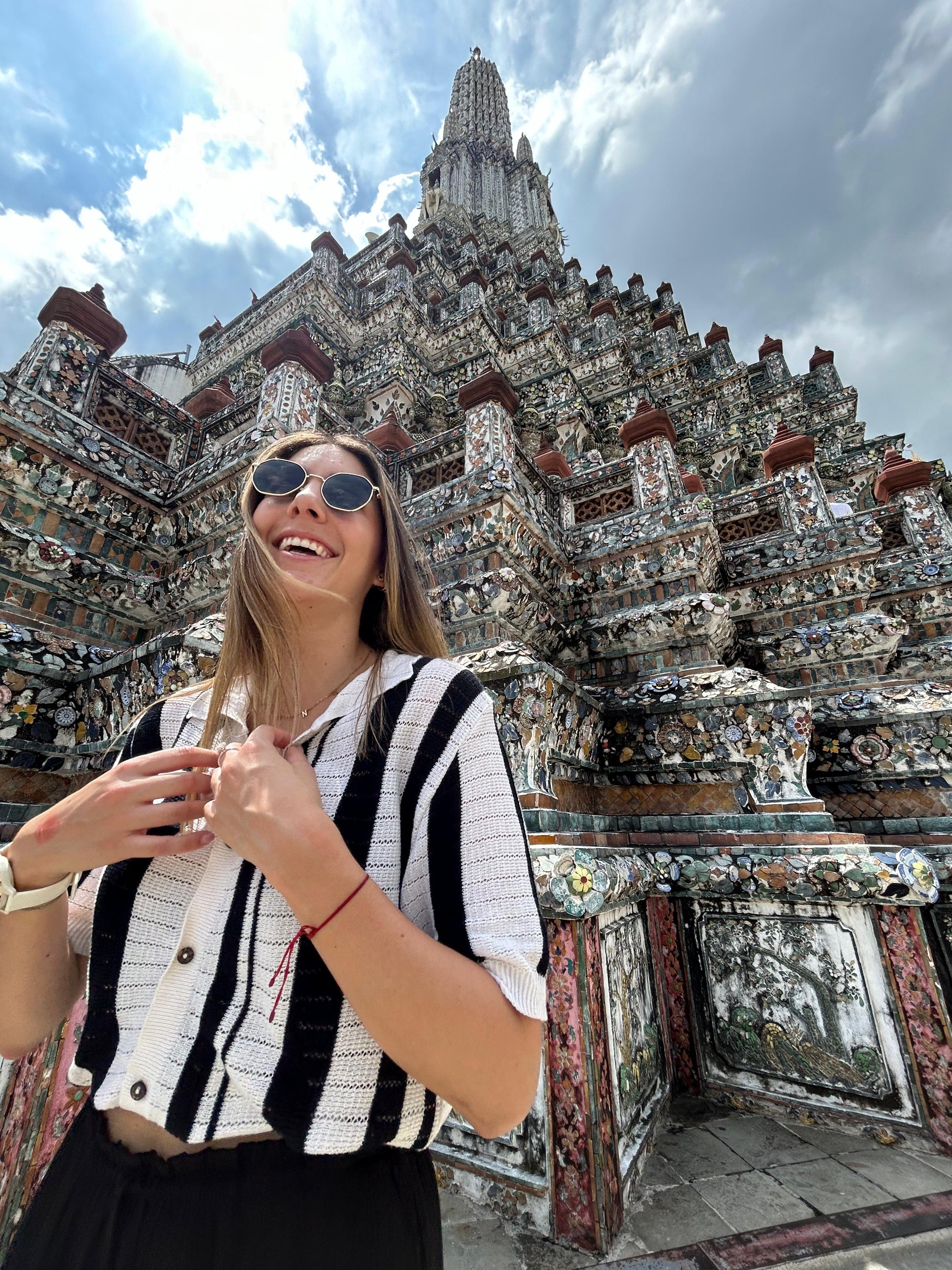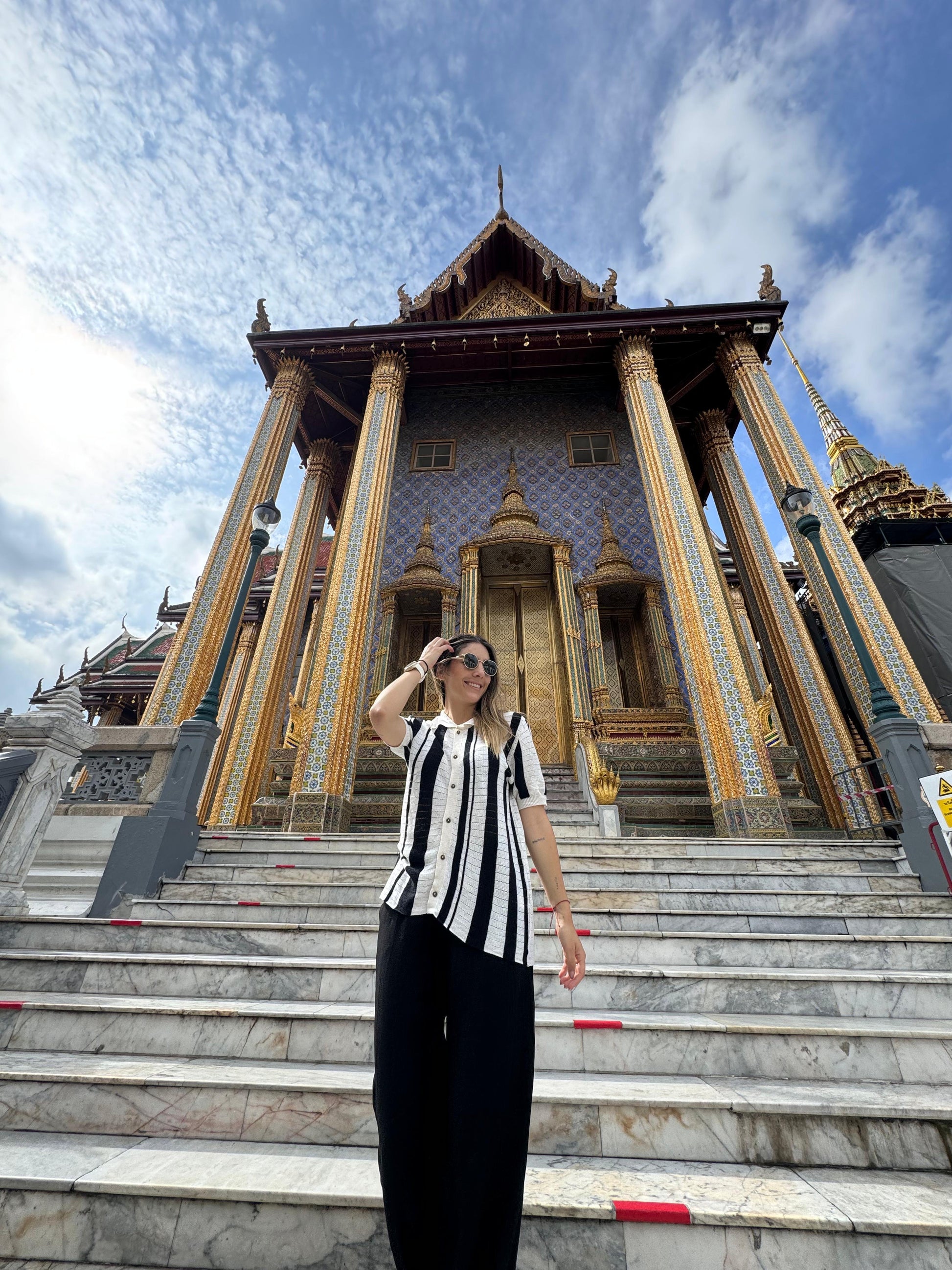 Un básico con personalidad. Nuestra camiseta tejida en combina comodidad y estilo gracias a su tejido calado con delicados huequitos que le dan frescura y un toque único. El contraste de rayas blancas y negras la hace versátil y moderna, mientras que los botones frontales aportan un detalle funcional y encantador. Perfecta para usar sola o como sobrecamisa ligera en tus looks diarios.
