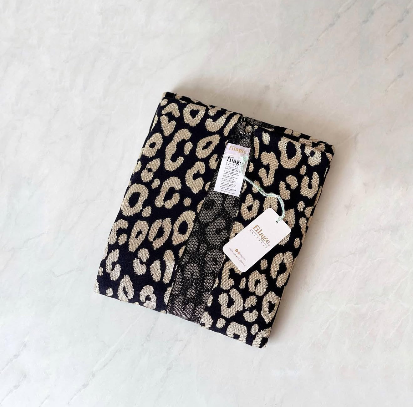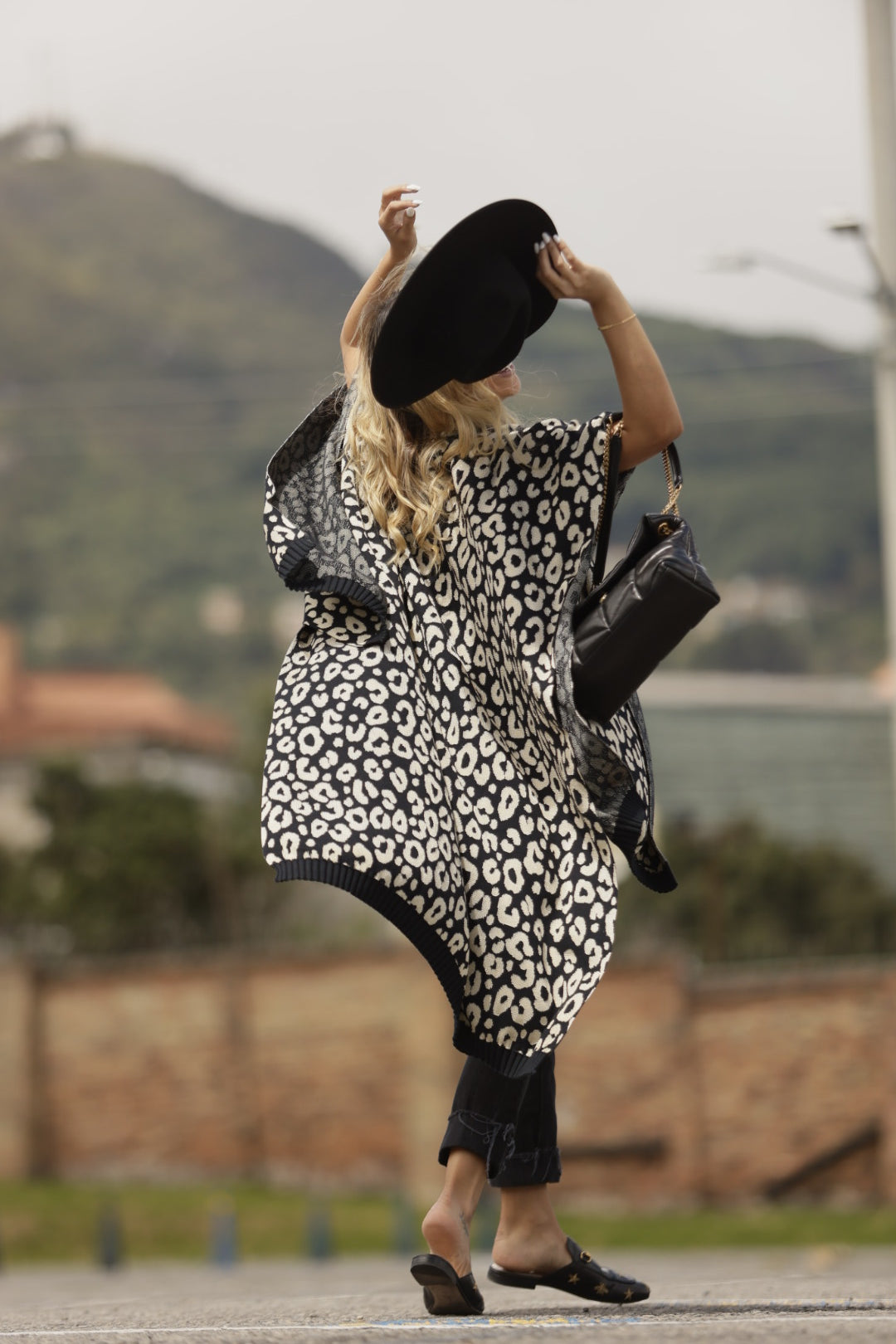 El animal print es de esos básicos que nunca pasan de moda — un must have que transforma cualquier look. Este poncho tejido en suave algodón negro con sutiles detalles en nylon dorado es una de esas piezas que elevan sin esfuerzo.